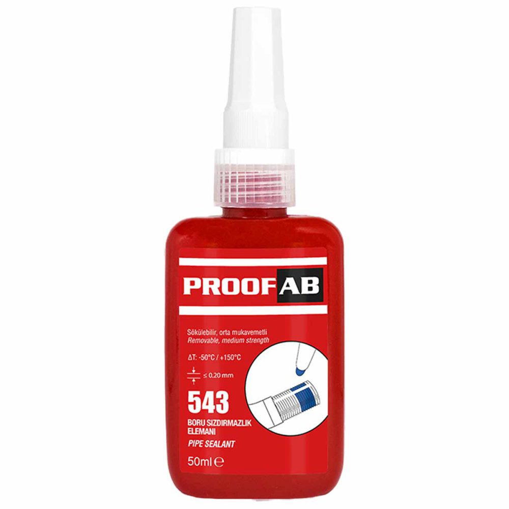 تفلون مایع پروفاب ۵۴۳ PROOFAB محصولی بسیار قدرتمند که جهت آببندی اتصالات صنعتی به کار میرود. همچنین از دیگر کاربردهای این محصول میتوان به آببندی، ثابت نمودن اتصالات فلزی، پلاستیکی و پلیاتیلن و قطعات با روکش فلزی، بهکارگیری برای مخازن تحتفشار، کمپرسورهای هوا، اتصالات دستگاههای هیدرولیک و سرسیلندر خودروها و استفاده برای لولههای انتقال آب، مایعات، هوا، روغن، گاز و لولههای انتقال مواد شیمیایی بهجز اسیدی اشاره کرد. تفلون مایع PROOFAB در حجم ۵۰ میلیلیتر تولید شده و مناسبترین دما برای نگهداری آن ۱۰+ الی ۳۰+ درجه است. همچنین تحمل حرارت بسیار بالایی دارد و تا ۲۰۰ درجه سانتیگراد را نیز تحمل میکند. این محصول باتوجهبه کیفیت مناسب و مقرونبهصرفه بودن طرفداران زیادی را به خود جذب کرده است.