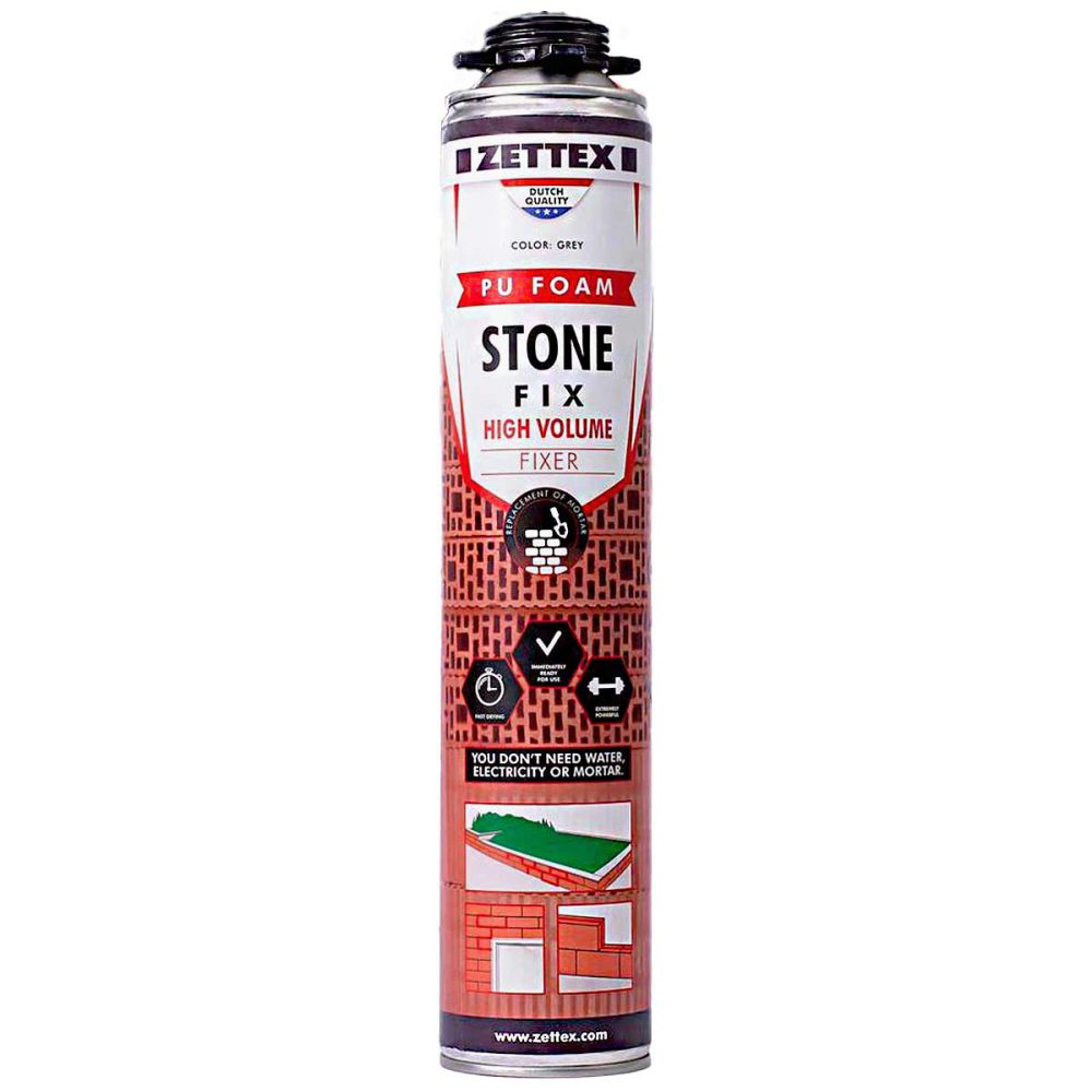 فوم ملات پلی اورتانی زتکس Stonefix چسبی تک جزئی و پلی اورتانی ساخت شرکت هلندی زتکس است. از این محصول برای اتصال بلوکها و سنگهای ساختمانی در امور ساختوساز استفاده میشود. برای استفاده از این محصول باید از گان مخصوص تزریق فوم استفاده کنید. با توجه به کاربردهای زیاد این محصول ازنظر اقتصادی بسیار مقرونبهصرفه بوده و علاوه بر پرکنندگی و عایقکاری، قدرت چسبندگی این محصول نیز بالا است. کاربرد این فوم ملات عموماً برای عایقکاری نمای ساختمان بوده ولی بهطور اختصاصی و حرفهای از این فومهای پلی اورتانی برای چسباندن و اتصال قطعات ساختمانی استفاده میشود.